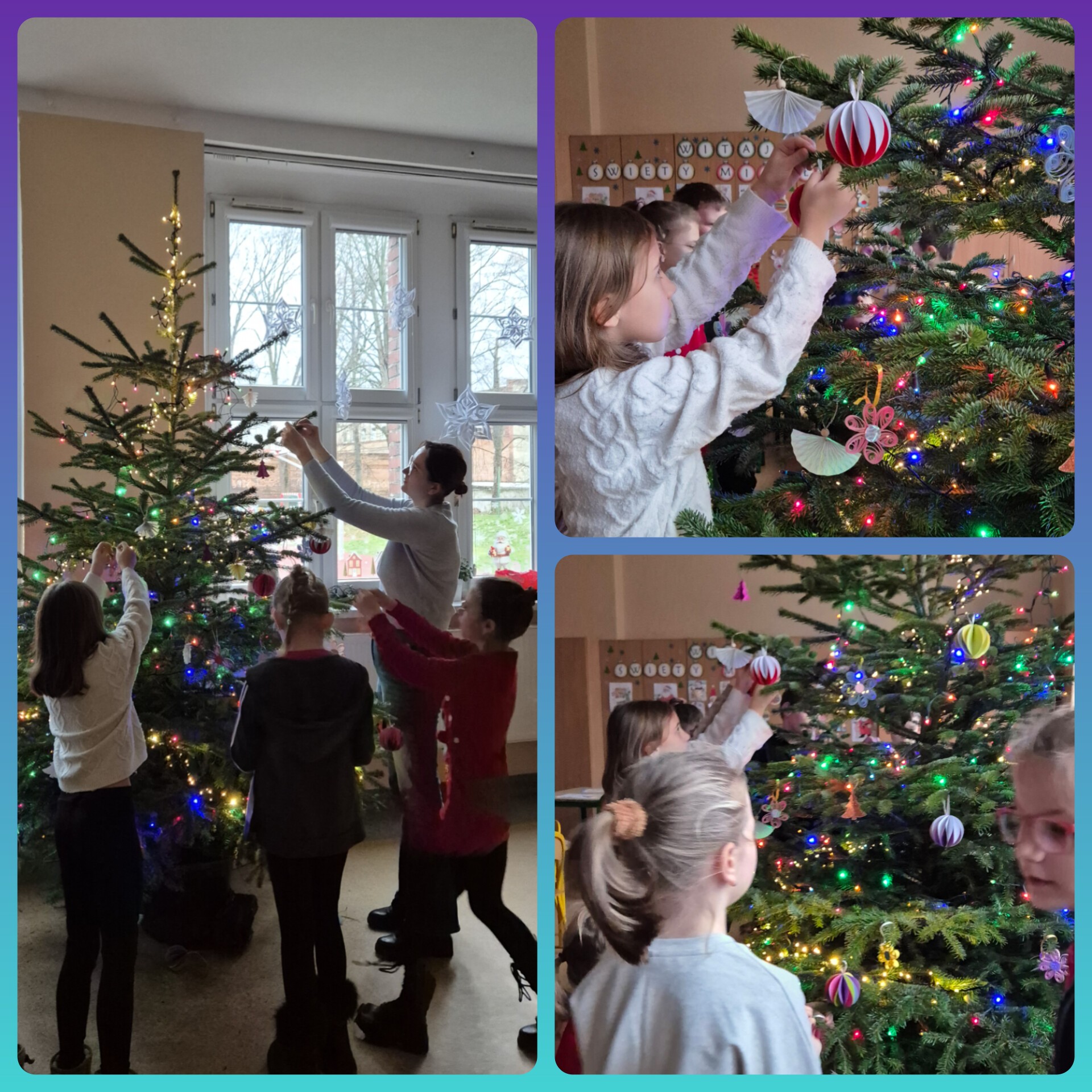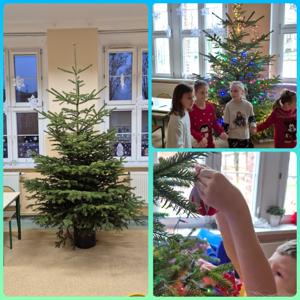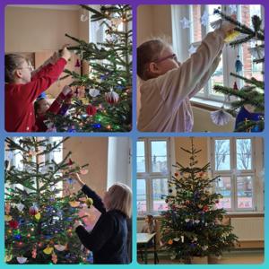 Dzieci wspólnie ubierały choinkę, tworząc piękne, własnoręczne ozdoby, które od razu wprowadziły magię świąt do naszej świetlicy.
